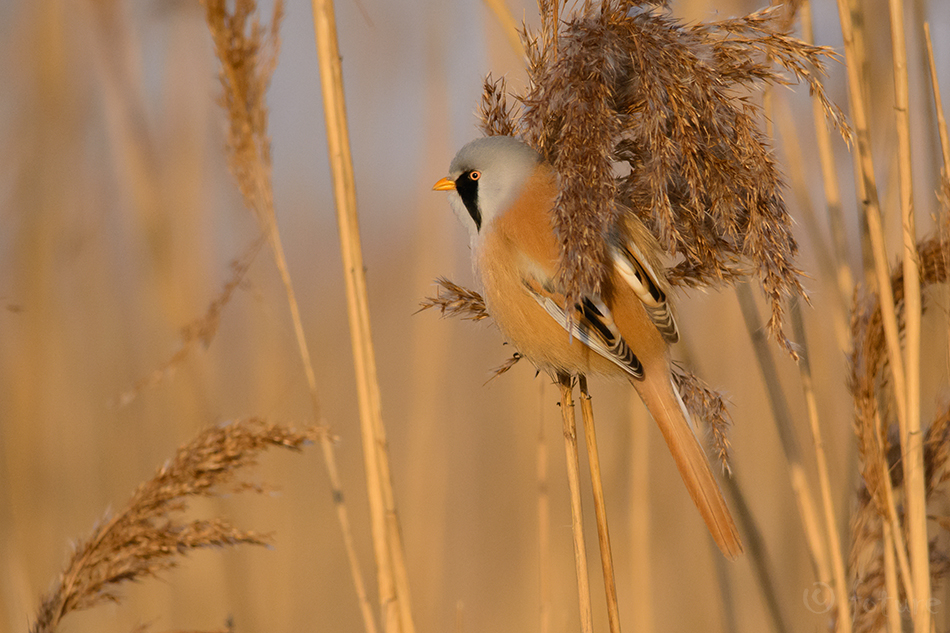 Bearded Reedling in its natural habitat in Harjumaa, Estonia.